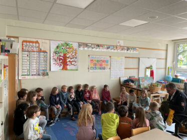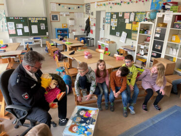 Herr Pistol, unser Kontaktpolizist, besuchte auch die Klassen 1a und 1c. „Pistole“ kam bei den Kindern gut an und erklärte ihnen auch noch einmal, dass Polizisten immer nett zu Kindern seien. Neben Informationen und Aufklärung über Aufgaben der Polizei gab es auch kleine Übungen und gute Tipps. Die Puppen, die Herrn Pistole begleiten, erfreuten sich großer Beliebtheit.