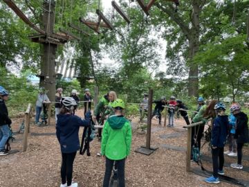 Einen tollen Vormittag hat die Klasse 3a zum Abschluss der Schulzeit vor den Ferien im Kletterpark „Wipfelstürmer“ verbracht. Ausgestattet mit Helmen und Gurten ging es nach einer kurzen Einführung ab auf die verschiedenen Parcours. Im Laufe der zeit wurden die Kinder immer mutiger und eroberten die luftigen Höhen. Die drei Stunden vergingen wie im Flug und das ein oder andere Frühstück blieb völlig unberührt. Ein aktiver, mutiger und schöner Ausflug, der allen gut gefallen hat.