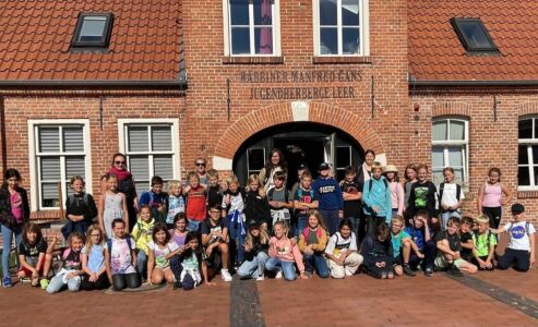 Die Klassen 4b und 4a machten sich gleich nach den Sommerferien auf den Weg nach Leer. Auf dem Programm bei dieser Klassenfahrt standen eine Stadtführung, eine Ralley, ein Besuch im Kletterpark, bummeln, spielen, eine Nachwanderung, singen, Disko/tanzen, grillen und noch einiges mehr. Die Jugendherberge in Leer hat uns super gefallen und auch vom Ort selber waren alle angetan. Das Wetter hat perfekt mitgespielt und alle Kinder und Erwachsene haben sich gut verstanden. Sogar ein Lied ist auf der Klassenfahrt entstanden. 🙂