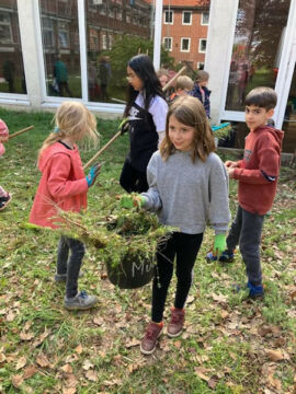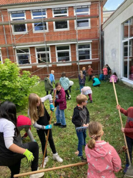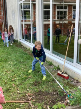 Zum Abschluss sangen wir einige Frühlingslieder und bedankten uns für die tolle Begleitung der NABU-Mitarbeiterinnen. Zufrieden liefen wir dann zur Schule.Einige Tage später ging es im Sachunterrichtpassend zum Thema „Frühblüher“ auf unsere Frühlingswiese, wo wir fleißig harkten und Unkraut zupften. Auch hier waren alle Kinder mit Begeisterung dabei.