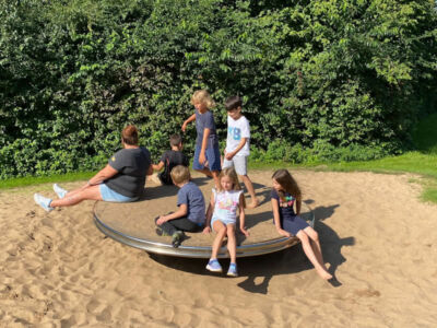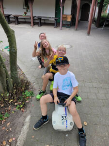 Bis Donnerstagabend wurde dann bei herrlichem Wetter auf dem tollen Spielplatz des Hauses, im Wald und im Haus gespielt und das leckere Essen der so lieben Hausdamen verspeist.