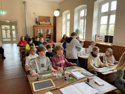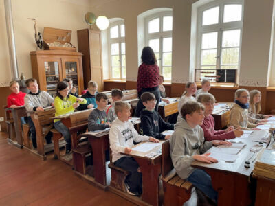 Am Mittwoch, den 12.4.2023, sind wir vom Bahnhof in Kirchweyhe mit dem Zug nach Syke gefahren. Zunächst sind wir zu Fuß ins Kreismuseum Syke gegangen. Als wir da waren, gingen wir rein. Das Thema, das wir hatten, war „Schule früher“. Als erstes hatten wir Deutsch (logischerweise so wie es damals war!). Die Sütterlinschrift war sehr schwer. Leider regnete es, deshalb konnten wir keine Leibeserziehung machen. Nun war Naturkunde dran. Danach waren wir in einem alten Bauernhaus, weil wir noch Zeit hatten (quasi als Ersatz für Leibeserziehung.).Elia Klasse 4a