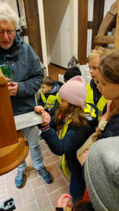 Wir sind mit der Känguruklasse vom 10.—11-12.24 nach Kirchweyhe gefahren, um die Ortsteile der Gemeinde Weyhe besser kennen zu lernen. Das ist auch gerade unser Thema im Sachunterricht. Wir haben in einer Kirche geschlafen. Nach dem Frühstück sind wir dann los Richtung Sudweyhe gelaufen. Als wir dann in der Grundschule in Sudweyhe angekommen sind, haben wir uns mit den FreiDay-Kindern von dort über den FreiDay ausgetauscht. Dann sind wir zur Wassermühle gegangen und ein netter Mann hat uns die ganze Wassermühle gezeigt und wie früher dort das Getreide verarbeitet wurde. Und wir haben am Fluss Hache im Wald Ellernbruch gespielt.