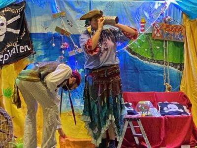 Am 18.11.21 kam das Kindertheater Schnurzepiepe zu uns in die Hundertwassergrundschule Leeste. Sie haben das Stück Nordseepiraten vorgespielt. In dem Stück ging es um Angst, Freundschaft und Streitereien. Die zwei Hauptpersonen waren Möwen Martha und Krabben Kalle. Sie haben einen Schatz gesucht um die Flotte Flunder (ein Boot) zu kaufen. Die beiden hatten nicht immer die gleiche Meinung aber am Ende wurde alles gut. Möwen Martha hatte eine sprechende Piratenmöwe auf der Schulter.