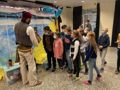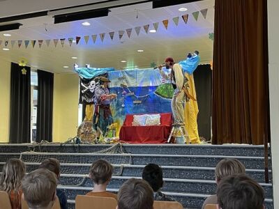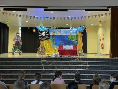 Am 18.11.21 haben die Schauspieler vom Schnurzepiepe Kindertheater das Stück „die Nordseepiraten“ in der Aula unserer Schule aufgeführt. Der ganze vierte Jahrgang war voll und ganz begeistert. Möwen Martha und Krabben Kalle haben uns oft durch ihr Schauspieltalent zum Lachen gebracht. Sie wollten wichtige Themen wie Angst, Mit und Freundschaft in ihr Theaterstück einbauen. Wir können das Theaterstück weiterempfehlen.