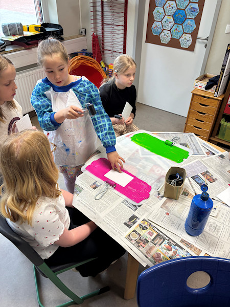 Die Kinder hatten viel Freude beim kreativen Arbeiten und konnten eigene Drucke gestalten. Ella und Nele begleiteten alles sicher und behielten stets den Überblick. Aufgrund der großen Nachfrage planen die beiden bereits, ihren Workshop bald noch einmal anzubieten.