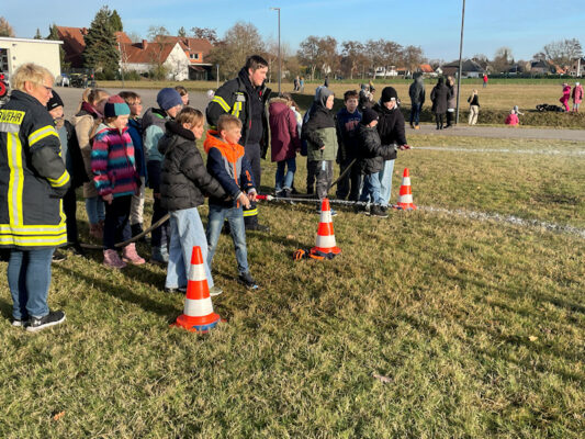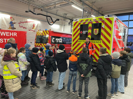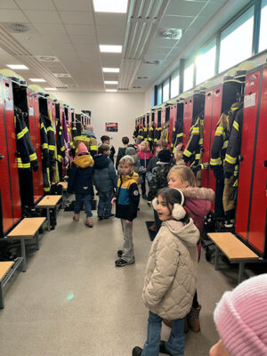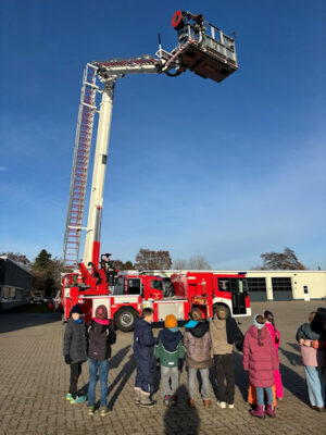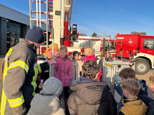 Bei herrlichem Wetter durfte der 3. Jahrgang am Montag die Feuerwehr besuchen. Zu Fuß machten sich die ca. 80 Kinder auf den Weg zum Feuerwehrhaus. Vor Ort warteten als Überraschung auch noch ein Rettungsfahrzeug und ein Polizeiauto mit jeweiligem Fachpersonal. Die Kinder bekamen einen Einblick in die Räumlichkeiten und Erklärungen zum Ablauf eines Einsatzes, zu Geräten und Ausrüstung und den Fahrzeugen. Als Höhepunkt durften alle Kinder mit dem Feuerwehrschlauch spritzen und einige konnten sich auch in die Fahrzeuge setzen.