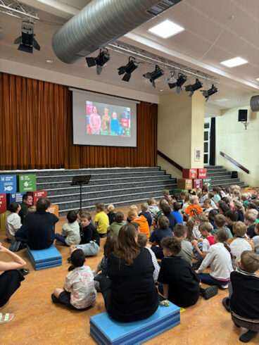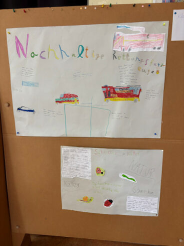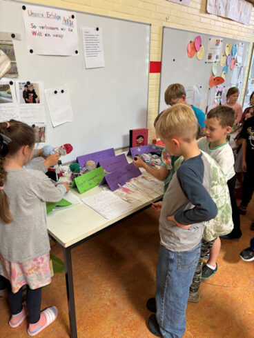 Heute haben wir unser erstes FREi DAY Jahr gebührend in der Aula mit vielen Gästen beendet. Es gab einen kleinen Film, in dem Kinder ihre Projekte vorgestellt haben, aber auch darüber berichtet haben, was ihnen am FREi DAY so gut gefällt und was sie bisher dort gelernt haben. Danach haben noch einige Gruppen auf der Bühne von ihrem Projekt berichtet. Die Gäste haben das Mutmacherprojekt, und das Projekt Hospiz Löwenherz kennengelernt. Außerdem haben sie etwas über bedrohte Tierarten erfahren und die Idee vom gemeinsamen Schulweg gehört. Anschließend konnten sich die Gäste noch ein paar Ausstellungsstücke anschauen die den Prozess von einzelnen Projekten zeigen.
