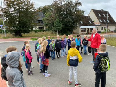 Die Klasse 3c hat sich mit dem Gästeführer Dieter Helms auf eine interessante Entdeckungsreise durch Leeste begeben.