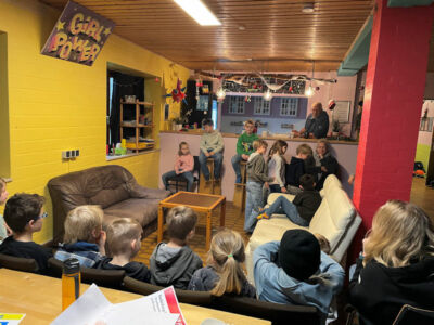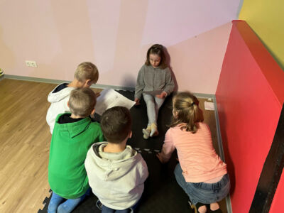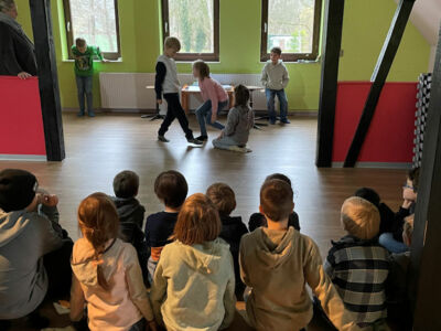 Diesen Freitag durfte die Klasse 2a im Jugendhaus verbringen. Auf dem Plan standen „Märchen“. In 5er Gruppen lernen die Kinder zunächst je ein Märchen kennen, mussten dieses lesen und sich gegenseitig erzählen. Dann sollten sie ihr Märchen szenisch umsetzen und dem Rest der Klasse vorführen. Hier sollte geraten werden, um welches Märchen es sich handelt. Vier tolle Vorführungen sind dabei entstanden und das Jugendhaus wurde in allen Räumen bespielt. Eine tolle Kooperation!