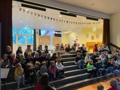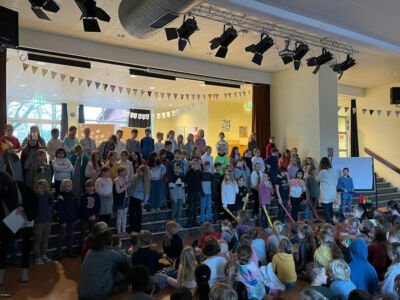Das Halbjahr endete mit einem tollen, bunten und gut besuchten Monatskreis, wie wir ihn schon lange nicht mehr erleben durften. Alle Klassen, Lehrkräfte, viele Eltern und die Kindergartenkinder sind der Einladung zum Halbjahresabschluss gefolgt. Ein tolles Programm aus Liedern, Präsentationen und Gedichten auf mindestens vier unterschiedlichen Sprachen wurde auf der Bühne aufgeführt. Dabei kooperierten auch verschiedene Klassen miteinander und präsentierten die Schule in ihrer ganzen Vielfalt. Toll zu sehen, was alles in der Hundertwassergrundschule möglich ist und wieviel Potenzial in den Kindern steckt 😄!