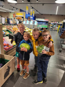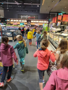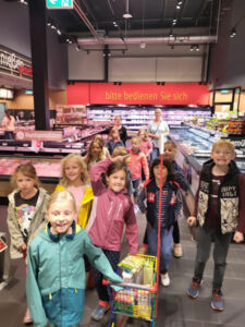 Wir haben gelernt, dass auch Zähne gesundes Essen brauchen. Deswegen waren wir einkaufen. Gemüse und Obst, Käse, Milch, Wurst und Vollkornbrot standen auf der Einkaufsliste.