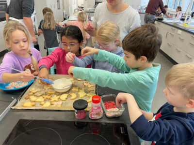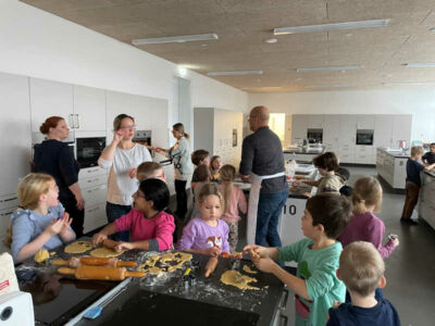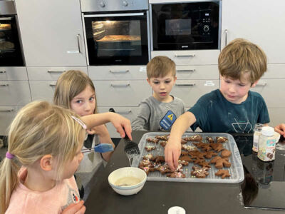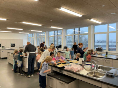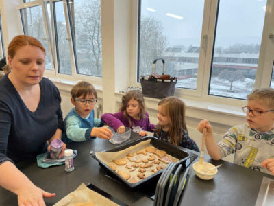 Am Nikolaustag durfte die Klasse 1a mit der Unterstützung von sechs Elternteilen die KGS Küche nutzen um viele bunte und leckere Kekse zu backen. In kleinen Gruppen wurden erst die Kekse ausgestochen und nach dem Backen mit Guss und Streuseln verziert. Ab heute darf dann jeden Tag die Keksdose einmal am Tag zur Frühstückspause in der Klasse kreisen.