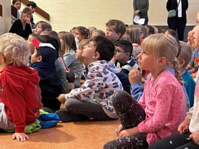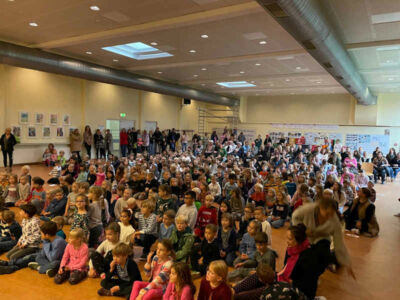 Am letzten Schultag vor den Herbstferien kamen alle Klassen in der Aula zu unserem ersten Monatskreis in diesem Schuljahr zusammen. Zum Zuschauen kamen außerdem einige Kinder der Kita Jahnstraße und zahlreiche Eltern und Großeltern.