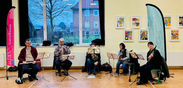 Liebe Frau Uekawa, mein Name ist Elaiza und ich möchte Ihnen von unserer Projektwoche „Bilder einer Ausstellung“ berichten. Sie fand vom 20.-24.01.2025 in unserer Hundertwassergrundschule Leeste statt. Am 24.01. gab es eine Aufführung zu allen 10 Bildern, die der Künstler Viktor Hartmann gemalt hat und mit der wundervollen Musik von Modest Mussorgsky. Ich fand die Musik von Ihnen und den anderen Musikern richtig toll! Ihr Instrument (die Klarinette) fand ich besonders gut und Sie sehr nett. Wir als Klasse 3b hatten das Bild „Die Katakomben“ und haben dazu ein Stück eingeübt.