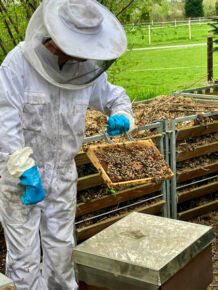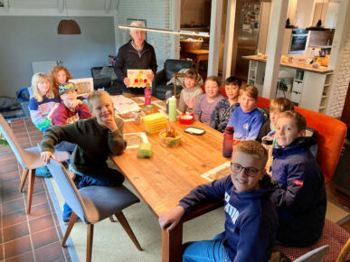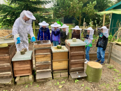 „Wir hatten in der Projektwoche das Thema Umweltschutz. Ich war in der Bienengruppe. Wir haben Plakate gestaltet und Bienenhotels gebaut. Am Freitag waren wir beim Imker. Da gab es SEHR viele Bienen. In der Frühstückspause durften wir frischen Honig probieren. Dann sind wir zurück zur Schule gegangen. Nachdem wir beim Musical zum Thema ‚Umweltschutz‘ zugeguckt haben, durften wir unsere Bienenhotels mit nach Hause nehmen. Mir hat die Projektwoche gut gefallen, weil ich als erster fertig war und es war toll die Bienenhotels zu bauen.“