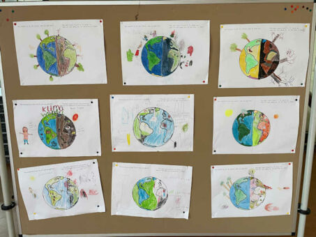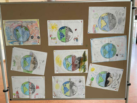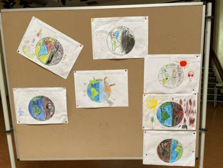 Die Klassen 1a, 2b und 3b haben sich mit unserer Erde und dem Leben darauf beschäftigt. Wir haben Bücher und Bilder betrachtet, kleine Filme gesehen und uns dann Gedanken darüber gemacht, wie wir die Erde und das Klima schützen können. Im Rahmen des Unicef Aktionstag „Kinderrechte- Save our blue planet-“ haben die Klassen eine Ausstellung vorbereitet.