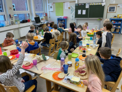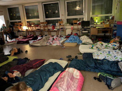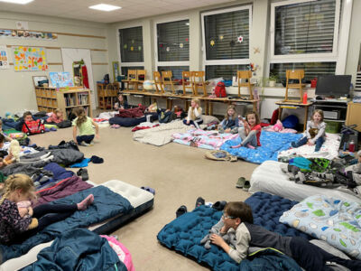 Von Dienstag auf Mittwoch hat die Eichhörnchenklasse in der Schule übernachtet. Im leergeräumten Klassenraum fanden alle Betten Platz. Es gab eine Büchervorstellungsrunde, Bilderbuchkino, Mal- und Bastelangebote, einen kleinen Snack in der Pausenhalle und ein anschließendes Spiel. Nach dem Zähneputzen kuschelten sich dann alle in ihre Schlafsäcke und Decken und es wurde noch eine Geschichte vorgelesen. Die Übernachtungsaktion endete am nächsten Morgen nach dem gemeinsamen Frühstück. Für einige Kinder war es die erste Nacht, die sie nicht zu Hause verbracht haben. Ganz schön aufregend für alle! 🙂