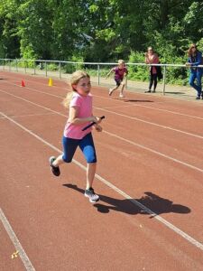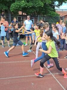 Zum gemeinsamen Abschluss „landeten“ die Kinder alle wieder in Leeste zum jahrgangsinternen Staffellauf. Hierbei konnten die Schülerinnen und Schüler gemeinsam als Klasse ihr Bestes geben.