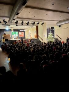 Endlich konnte wieder ein festlicher weihnachtlicher Monatskreis in der Aula mit allen Klassen stattfinden. Viele aufgeregte Kinder und Erwachsene durften sich zum gemeinsamen Singen mit und ohne Weihnachtsmütze im Kerzenschein zusammenfinden. Auf der Bühne wurden Tänze, Lieder, Gedichte und Akrobatik präsentiert. Den Abschluss bildete der endlich wieder stattfindende Schulchor! Auch die Kindergartenkinder konnten diesem bezaubernden Monatskreis beiwohnen. Jetzt kann Weihnachten kommen!